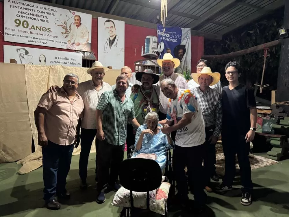 Castanheiras, RO* – Na noite de ontem, a fazenda Porongo, propriedade do vice-prefeito da cidade e filho de Dona Eudóxia, se transformou em um verdadeiro templo de celebração. Aproximadamente 400 pessoas, entre familiares e amigos, reuniram-se para homenagear Dona Eudóxia Bonifácio de Souza, que completou 100 anos de vida.